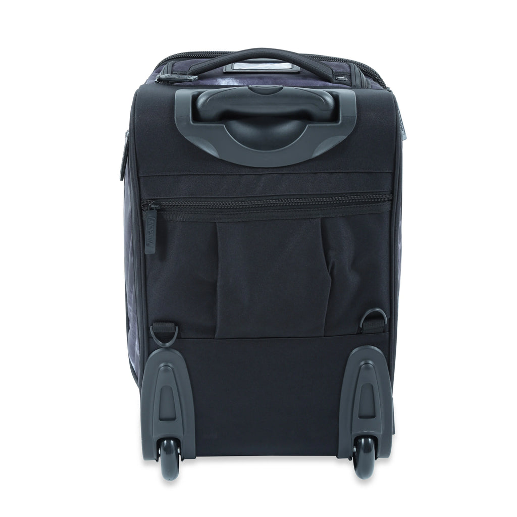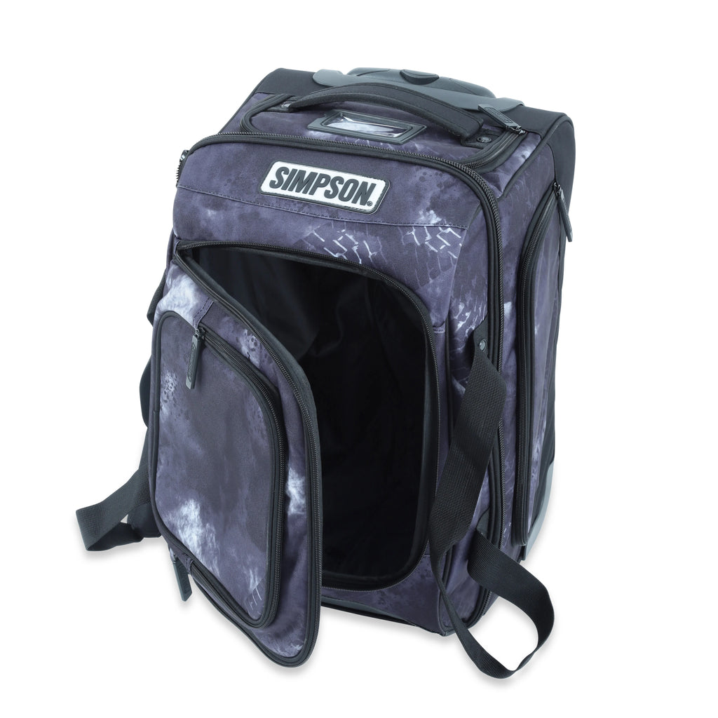 DNA design Overnight Carry on sizing dual access main pocket quick retrieve personal pocket. Retracting telescopic handle. Inline wheels and trolley system. Integrated padded backpack strapsHolds a helmet, head restraint, personal gear and much more.